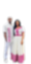 His and hers set featuring an off-shoulder elegant dress with unique modern embroidery on the waist and slit sleeves, paired with a mandarin collar coat for him with embroidery on the shoulder and and down the sleeve.